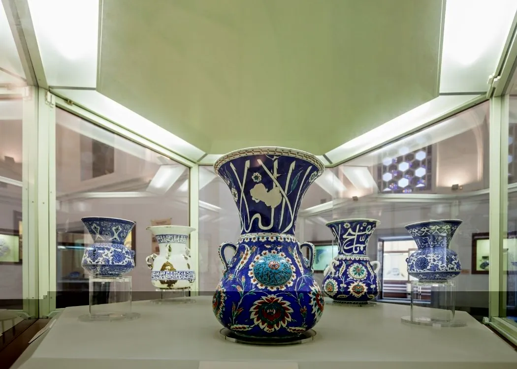 The Tiled Pavilion Museum, the oldest building in the Istanbul Archaeological Museums complex, was built by Mehmed the Conqueror. It welcomes its visitors with its architecture reflecting the Persian style and a columned portico decorated with magnificent mosaic tiles. The pavilion contains many examples of Turkish tiles and ceramics from the Seljuk and Ottoman periods.